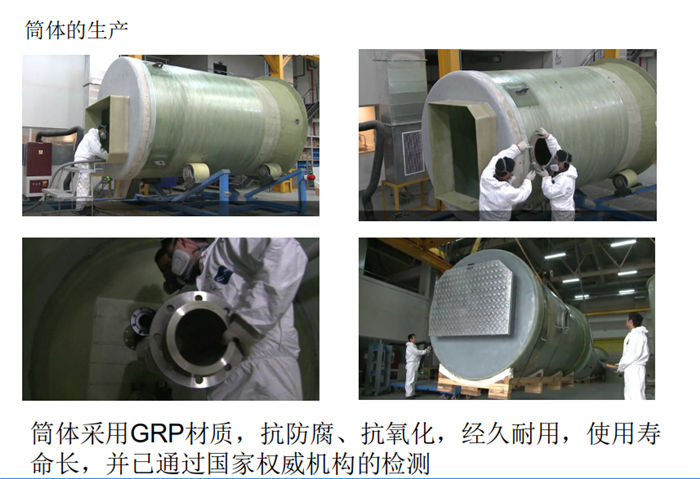 一體化污水提升泵站是一種市政生活污水、工業(yè)廢水整體玻璃預(yù)制泵站。主要以復(fù)合纏繞玻璃鋼筒體為主體,內(nèi)設(shè)潛污泵、自動耦合裝置、管道、閥門、控制系統(tǒng)、爬梯、維修平臺等,根據(jù)用戶需求還可在進(jìn)水管道后加設(shè)提籃格柵或粉碎型格柵,筒體上設(shè)有玻璃鋼頂蓋,是把所有設(shè)備及儀表集成在一起的成套設(shè)備。